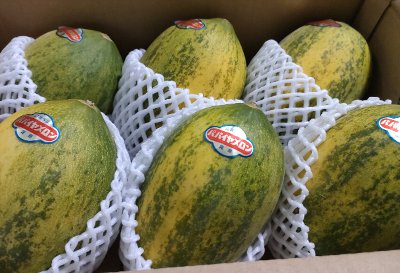 見た目がパパイヤに似ているのでこの名前のようですね。確かにパパイヤはこんな色をしています。白肉の爽やかなメロンです。