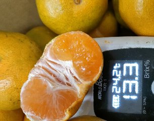 このみかんの最大の特徴は果肉の張りです。剥いた時にプチプチとはじけるような、はるみにも似た感触があります。これが口に入れると歯ざわりがあって、とてもおいしいです。