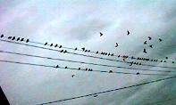 店の前の電線に毎日ひよどりの大群がやってきます。昨日は午後3時頃、今日は12時頃でした。たぶん餌場と巣のルートの途中でひと休みしているのでしょう。愛鳥家のみなさん、間違ってたらすみません。でも、頭上に鳥が群れているとあんまりいい気持ちはしないですね。ヒッチコックの映画みたいですし、おみやげがポトリと落ちてくるのも心配です。