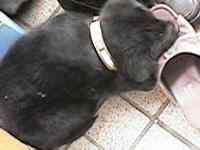 お客さんが小犬をたくさん連れてきました。6匹も生まれて1ヶ月経つのですがもらい手がなく、車に積んであちこち回っているそうです。保健所に連れていくかどうか悩んでおられました。母親はゴールデンリトリバーで父親が不明、つまり雑種ですが多分大きくなるだろうということでみんな敬遠するそうです。確かに手足はでかいです。そのなかの1匹を貰うことにしました。色が真っ黒なので名前は「クロ」です。1ヶ月のオスです。