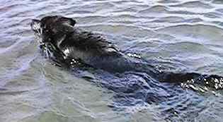クロを川につれていきました。すっかりおおきくなって(体重16kg)おじさん顔になったクロですが本人はまだまだ子供のつもりです。はじめての川にもかかわらず自らドボンと飛び込んでいっていきなり犬かきで泳いでいます。こいつは本当に犬なのだろうかと思うくらい器用に上手に泳いでいます。色が真っ黒なのでアザラシのようにも見えます。
