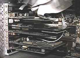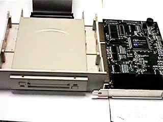| 接続は非常に簡単、ただISAカードを差し込んで本体をセットするだけ。windows95標準のカードドライバで完全なplug and playでした。期待したトラブルもなし。ちょっとがっくり.. 一番下に見えるのはquantumの旧5インチハードディスク。ベイがひとつ塞がってもったいないけど、あるものは何でも使うのだ。 |